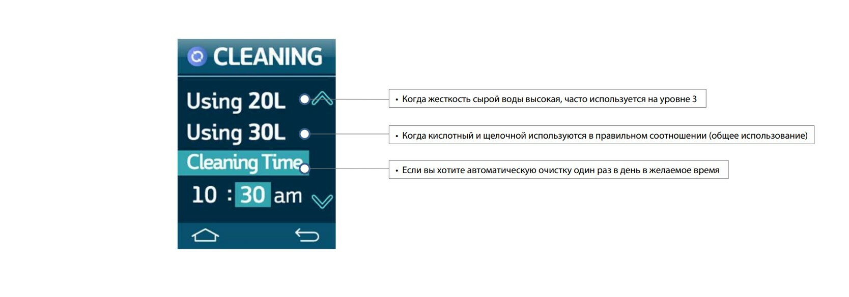 Поддерживая электролитический резервуар всегда чистым, эта функция позволяет стабильное электролитическое действие.